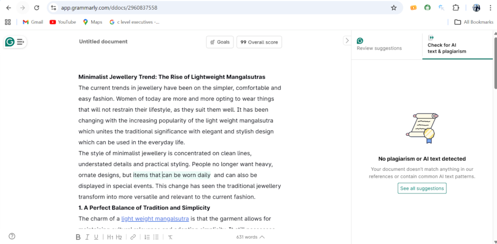 The jewellery of minimalism focuses on simplicity, elegance and functionality. The perfect example of this trend is a light weight mangalsutra that is concerned with clean designs and fine detailing. It does not emphasise elaborate designs but emphasises subtle beauty, which is achieved by refined craftsmanship. This is what renders it attractive to a person who likes discreet but classy accessories.